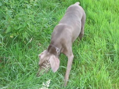 Wir haben eine wunderschönen Weimaraner Hündin, die leider etwas verrückt ist. Sie ist ein Jagdhund und erfüllt auf diesem Gebiet ihren Job gut.